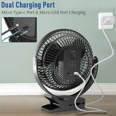 【Schnelles Aufladen und dennoch langlebiger Akku】 Dieser batteriebetriebene Lüfter wird mit einem 10000-mAh-Akku geliefert. Es hat das Potenzial, einen ganzen Tag mit einer vollen Ladung zu laufen. Mit seinem USB-C-Anschluss und dem Micro-USB-Anschluss bietet es eine Ladegeschwindigkeit von 10 W. Dadurch lädt sich der Lüfter 50 % schneller wieder auf. Es wird in nur 6 Stunden vollständig aufgeladen.