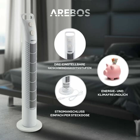Praktisch, effizient und einfach zu bedienen – das ist der AREBOS Turmventilator. Sichern Sie sich jetzt Ihr Modell!