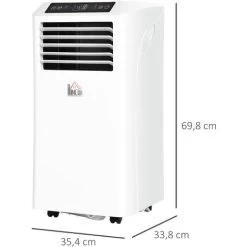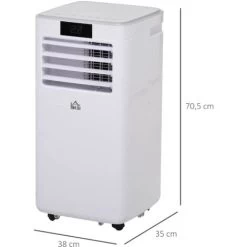 Die lenkbaren Transportrollen ermöglichen einen schnellen und einfachen Ortswechsel. Für eine einfachere Bedienung besitzt die Klimaanlage ein LED Bedienfeld und eine Fernbedienung die mit einem 24 Stunden Timer und einem Schlafmodus ausgestattet ist.