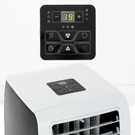 Die lenkbaren Transportrollen ermöglichen einen schnellen und einfachen Ortswechsel. Für eine einfachere Bedienung besitzt die Klimaanlage ein LED Bedienfeld und eine Fernbedienung die mit einem 24 Stunden Timer, einen Schlafmodus ausgestattet ist.