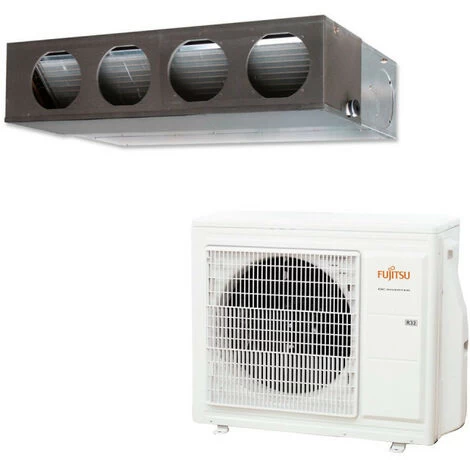 FUJITSU ACY50K-KA Split-Kanal-Klimagerät Inverter Slim mit effizientem und ökologischem Kältemittelgas R32 mit 5,2 kW Kühlleistung und 6 kW im Heizbetrieb mit Inverter-Technologie, Energieklasse A+/A, Stromverbrauch von 1,66 kW im Kalt- u 1,71 kW Wärme. Ultraleise 26dB. Beinhaltet tägliche und wöchentliche programmierbare Steuerung. Mit kompakten Abmessungen für das Innengerät von 198 x 700 x 620 mm und 542 x 799 x 290 mm für das Außengerät.