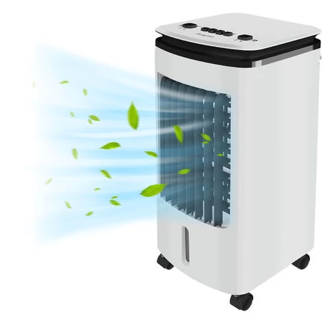 Die Mobile Klimaanlage mit Wassertank und Eisblöcken kühlt die Luft auf eine angenehme Temperatur.