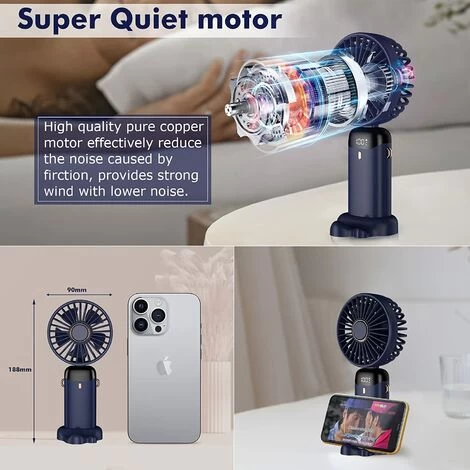 【Geräuscharm und tragbar】Der hochwertige Motor aus reinem Kupfer reduziert Reibungsgeräusche und sorgt für starken Wind bei geringerer Geschwindigkeit Lautstärke. Mit einem Gewicht von nur 190 Gramm lässt sich der Handventilator überall und jederzeit mitnehmen. Sie können ihn als Handventilator, Halsventilator durch einfaches Umhängen im Freien oder als Schreibtischventilator bei der Arbeit verwenden.