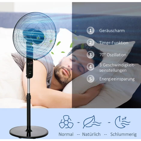 Perfekt für jede heiße und stickige Umgebung ist unser Schwingventilator mit Fernbedienung. Diese kostengünstige und hocheffiziente Kühllösung für große und kleine Räume an heißen Tagen lässt sich leicht in der Höhe verstellen. Seine weit verbreitete Oszillation trägt dazu bei, die stagnierende Heißluft durch eine schnelle Strömung und ein hohes Kühlluftvolumen zu ersetzen. Bequemer Betrieb dank der einstellbaren Zeitschaltuhr bis zu 7,5 Stunden und der Fernsteuerung.