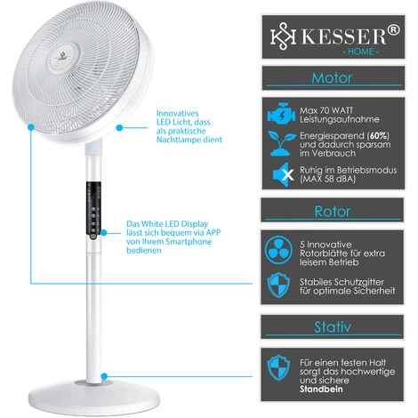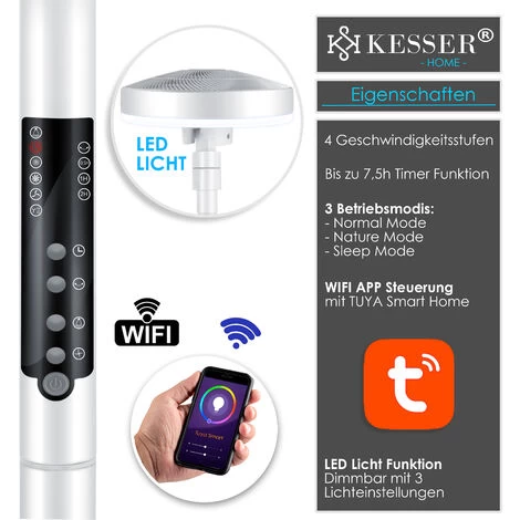 KESSER 4in1 Standventilator Mit Wifi Tuya App, Fernbedienung, LED Licht , LCD-Anzeige und Timer