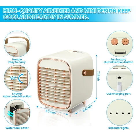 ❄Lange Akkulaufzeit und zum Abspielen drücken – Eingebauter 2000-mAh-Lithium-Akku, kann ohne Aufladen 5 Stunden lang ununterbrochen verwendet werden. Der NASUM-Mini-Luftkühler ist einfach zu bedienen. Drücken Sie einfach die Ein-/Aus-Taste des Lüfters, um den Lüfter einzuschalten. Es muss nicht an den USB-Anschluss angeschlossen werden.