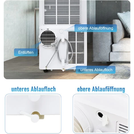 Die vier Hauptfunktionen dieser mobilen Klimaanlage, nämlich kühlen, lüften, trocknen, schlafen. Benutzer können die Temperatur im Raum über den Kühlmodus dieser Klimaanlage senken. Die Temperatur kann zwischen 16℃ und 32℃ eingestellt werden. Der Lüfter hat drei Geschwindigkeiten und Sie können den passenden Belüftungsmodus für die Luftzirkulation auswählen. Benutzer können den Timer auf 24 Stunden einstellen.