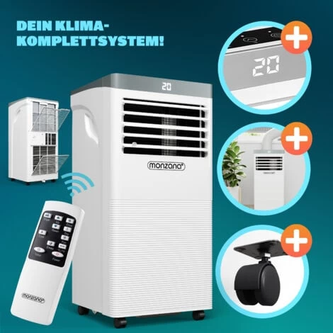 Die monzana Raumklimaanlage MZKA780 mit einer Leistung von 7000 BTU/h und einem Luftvolumen von 360m³ pro Stunde kühlt schnell und effizient. Manuell einstellbare, horizontale Lamellen sowie eine automatisch schwingende vertikale Lamelle sorgen für eine optimale Luftverteilung. Mit einer Entfeuchtungskapazität von fast 20L/24h, sorgt das Klimagerät für ein besseres Raumklima und beugt Schimmelbildung vor.