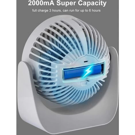 【3 Geschwindigkeitsmodi】Drücken Sie einfach die Touch-Taste oben am Ventilator um zwischen niedriger, mittlerer und hoher Geschwindigkeit zu wechseln. Wenn der Akku voll aufgeladen ist, kann er 2 Stunden bei hoher Geschwindigkeit, 3.5 Stunden bei mittlerer