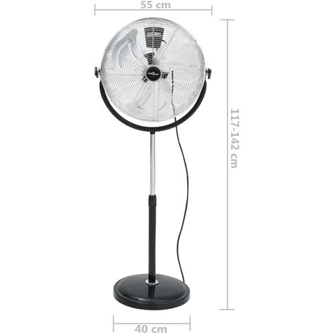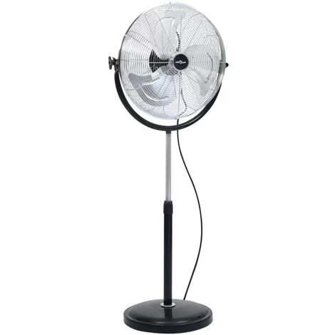 Die kühle Luft wird von einem leistungsstarken und dennoch leisen Motor mit 100 Watt erzeugt. Mit den drei einstellbaren Geschwindigkeitsstufen (niedrig, mittel, hoch) dieses leistungsstarken Motors und dem einstellbaren Neigungswinkel können Sie die Windmaschine an Ihre individuellen Bedürfnisse anpassen. Mit seiner 85-Grad-Schwenkfunktion kann er die Luft in einem großen Bereich kühlen. Das verchromte Design aus Vollmetall ist sehr robust und langlebig. Der stabile Ständer und der Metallkäfig sorgen außerdem für einen sicheren Betrieb. Er ist höhenverstellbar und hat einen neigbaren Kopf für einen optimalen Kühleffekt.