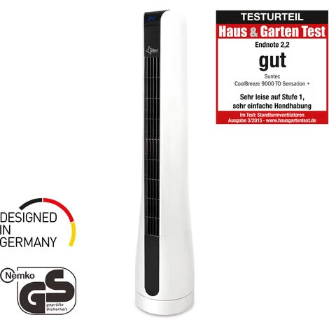 - DESIGN: Mit einer angenehmen Laufruhe, dem sparsamen Verbrauch und dem platzsparenden Design lässt sich der Ventilator bequem an jeden Ort stellen, wie zum Beispiel neben ein SUNTEC Klimagerät, um von der maximalen Kühlleistung zu profitieren.