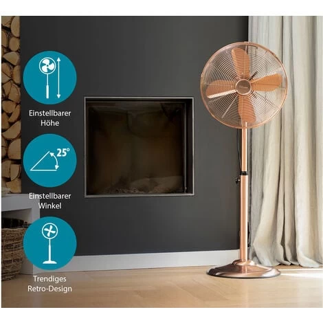 Angeschlossen wird der Luftkühler durch ein Kabel mit einem Eurostecker. Die dabei benötigte Stromversorgung liegt bei 220-240 Volt. Mit einem Luftstrom von 3560 m³/Stunde und einem Geräuschpegel von 64,3 dB ist der Retro Ventilator besten geeignet für Büros, Schlafzimmer oder Wohnzimmer.