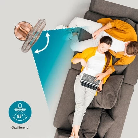 Für ein angenehmes Klima und frischen Wind sorgen ein leistungsstarker Motor mit 50 Watt sowie drei einstellbare Gebläse Stufen mit unterschiedlicher Leistung (900-1100-1300 U/m). Der Lüfter ist in einem 85 Grad Winkel oszillierend, das heißt er bewegt sich hin und her und verteilt so eine angenehme Brise im gesamten Raum. Selbstverständlich lässt sich der Standlüfter auch so einstellen, dass er die Luft nur in eine Richtung bläst.
