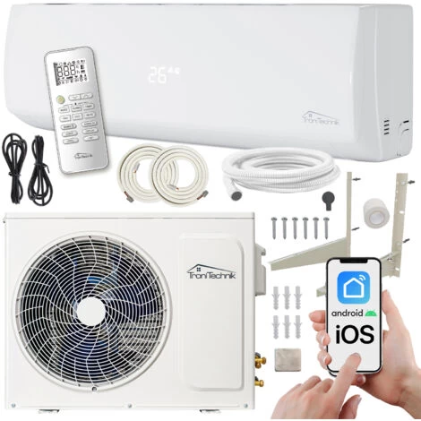 Bitte beachten Sie, dass die Klimaanlage ausschließlich von zertifizierten Fachpersonal installiert werden muss. Im Lieferumfang sind keine Batterien enthalten.
