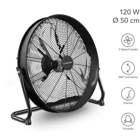 Bis in die letzte verchromte Flügelspitze ganz aus robustem Metall gefertigt und mit einer Kupfer-Spule im Motor ausgestattet, ist der Bodenventilator auf eine besonders lange Lebensdauer ausgelegt. Das Gerät bläst mit hohem Luftdurchsatz und einem Flügeldurchmesser von 20 Zoll (rund 50 cm) selbst heißeste angestaute Luft aus Wohn- oder Büroräumen weg. Zudem verfügt er mit 120 Watt über genügend Leistungsreserven, um auch bei eskalierenden Temperaturen hinreichend Kühlung zu bieten.