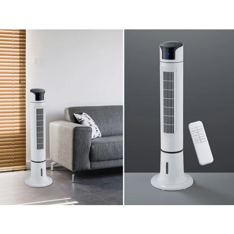 Der Klima Ventilator hat eine Höhe von 114cm einen Durchmesser von 34cm. Der kleine Stehventilator ist oszillierend, das heißt er bewegt sich hin und her und verteilt so eine angenehme Kühle im gesamten Raum. Selbstverständlich lässt sich der Luftkühler auch so einstellen, dass er die Luft nur in eine Richtung bläst. So können Sie ihn ganz nach Ihren Bedürfnissen aufstellen, ausrichten, und überall dort platzieren wo Sie eine Erfrischung benötigen.